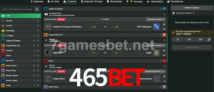 O 465bet oferece uma grande seleção de opções de apostas em e-sports com probabilidades competitivas